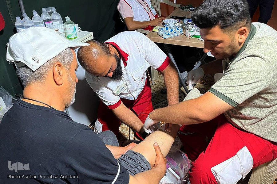 جمعیت هلال احمر آذربایجان غربی با استقرار تیمهای ویژه امدادی و پزشکی در مرز تمرچین پیرانشهر و اربیل عراق به زائران اربعین حسینی خدمات ارائه میدهد.